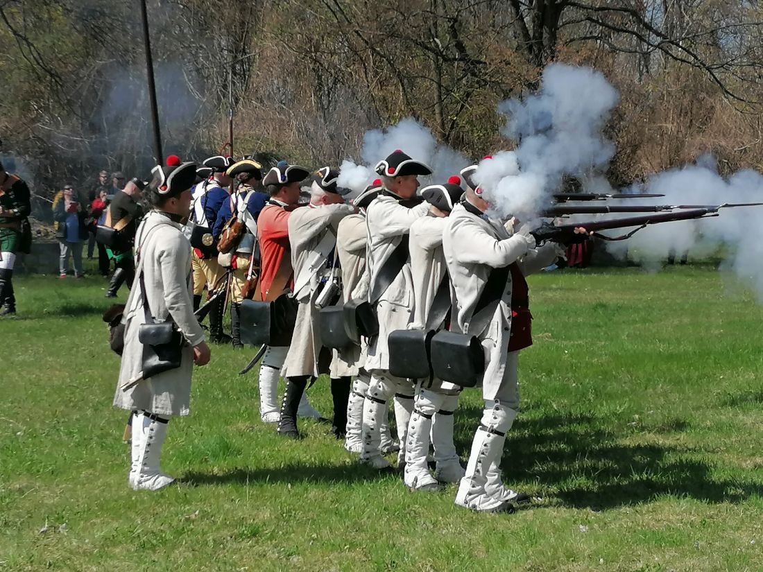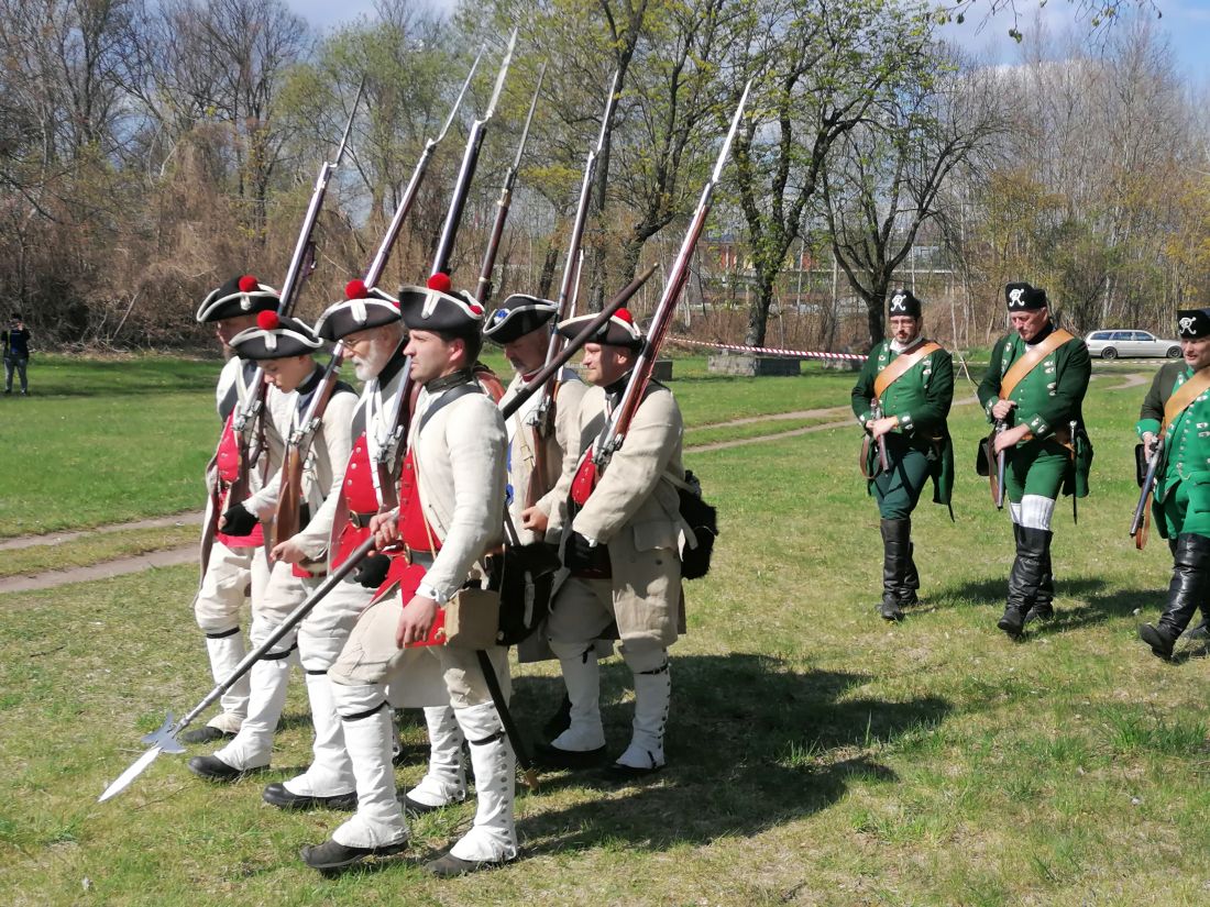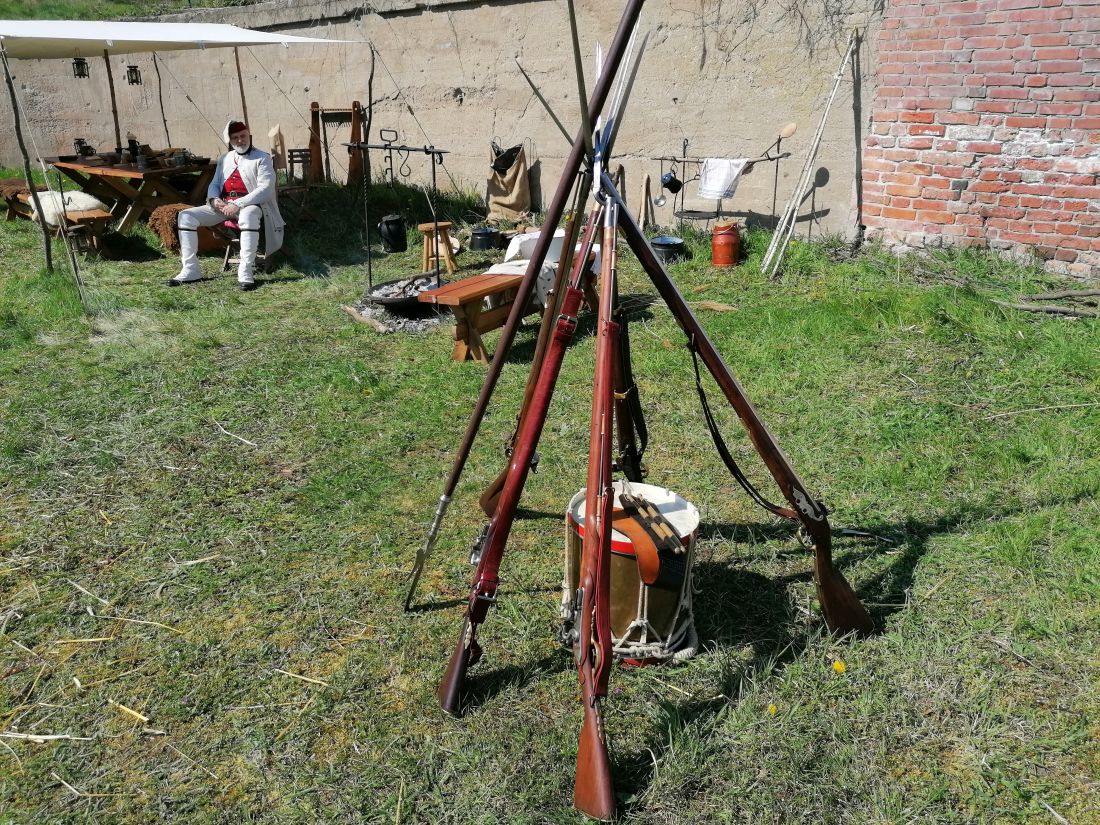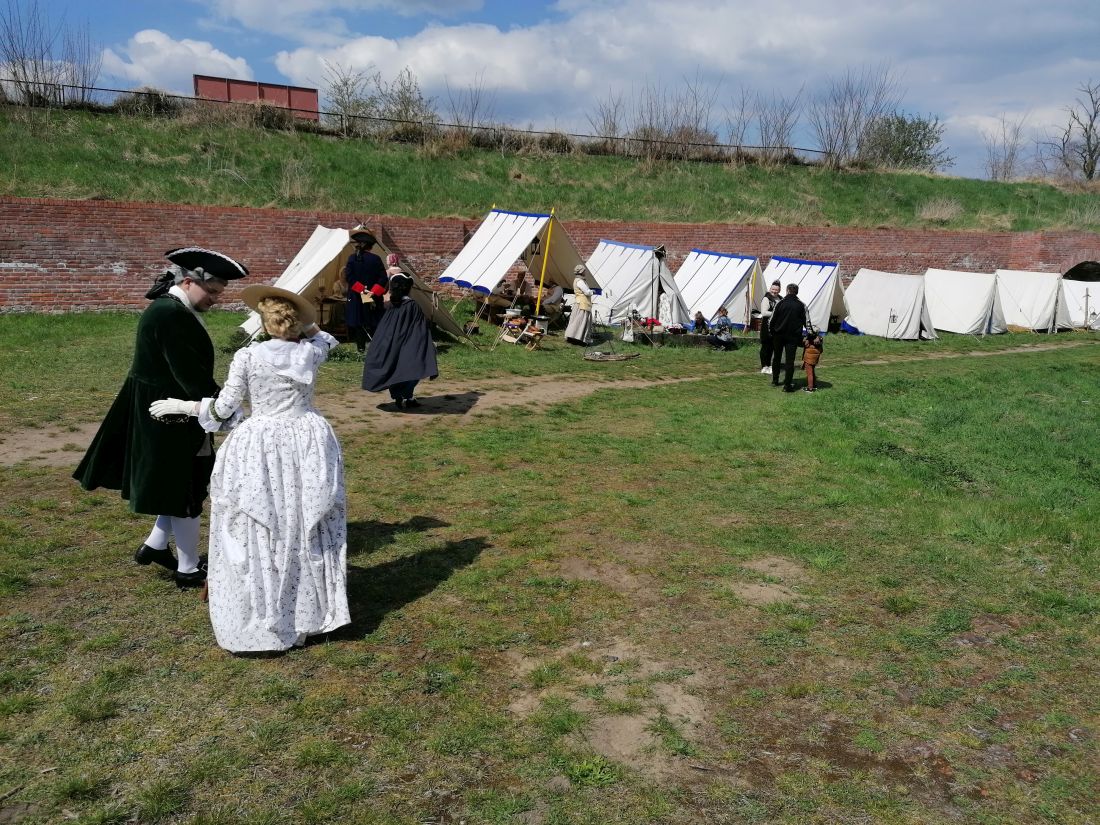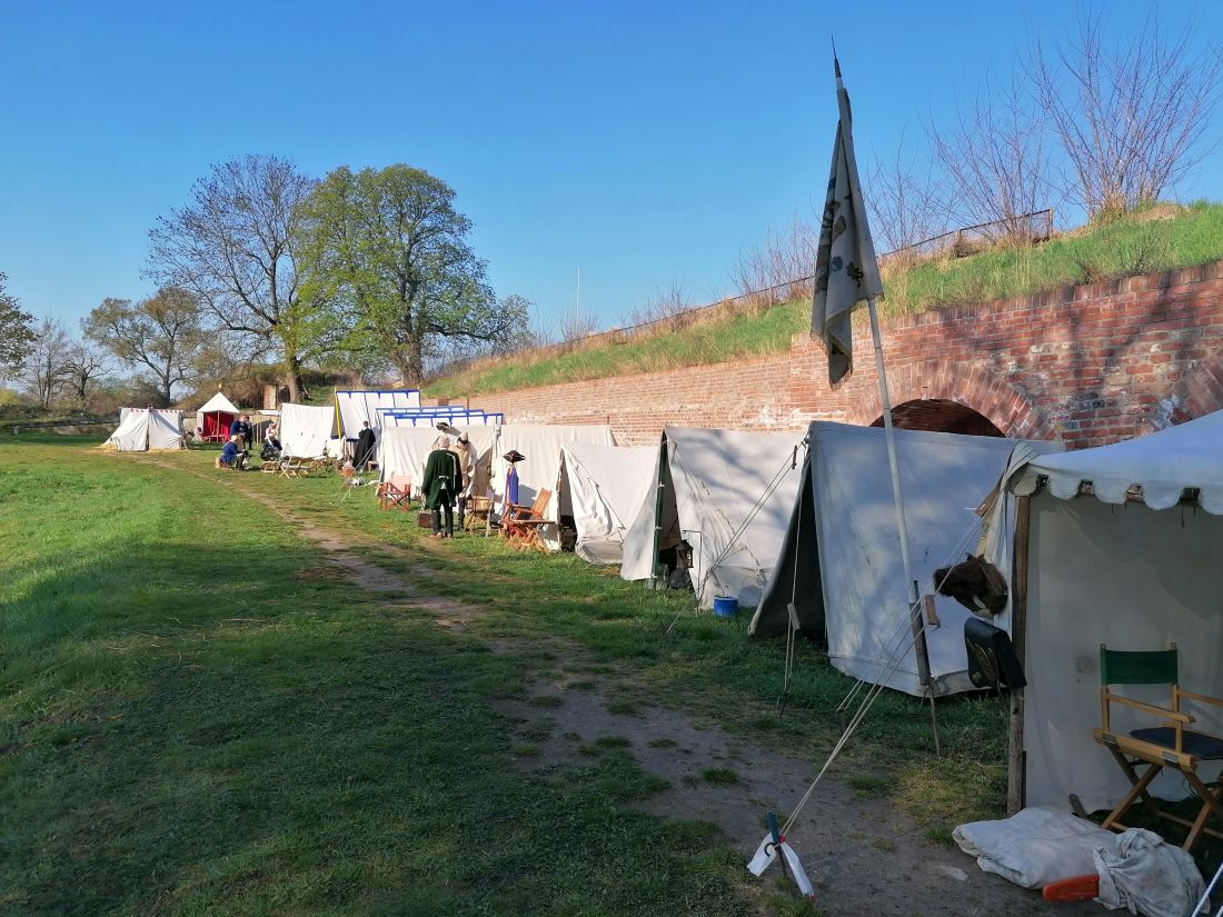 Nach einer mehrjährigen Pause wurde die Altstadt während der traditionellen Frühjahrsmanöver wieder von Darstellern deutscher historisch-militärischer Vereine besucht. Zum ersten Mal schlugen sie ihr Lager auf dem Festungsgelände auf - bisher war ihr Biwakplatz das Fort Gorgast, von wo aus sie zu uns zu Übungen kamen. Diesmal stand bereits am Freitagabend eine Reihe von Militärzelten aus der Zeit Friedrichs des Großen (18. Jahrhundert) an der Mauer zwischen Berliner Tor und der Bastion König.