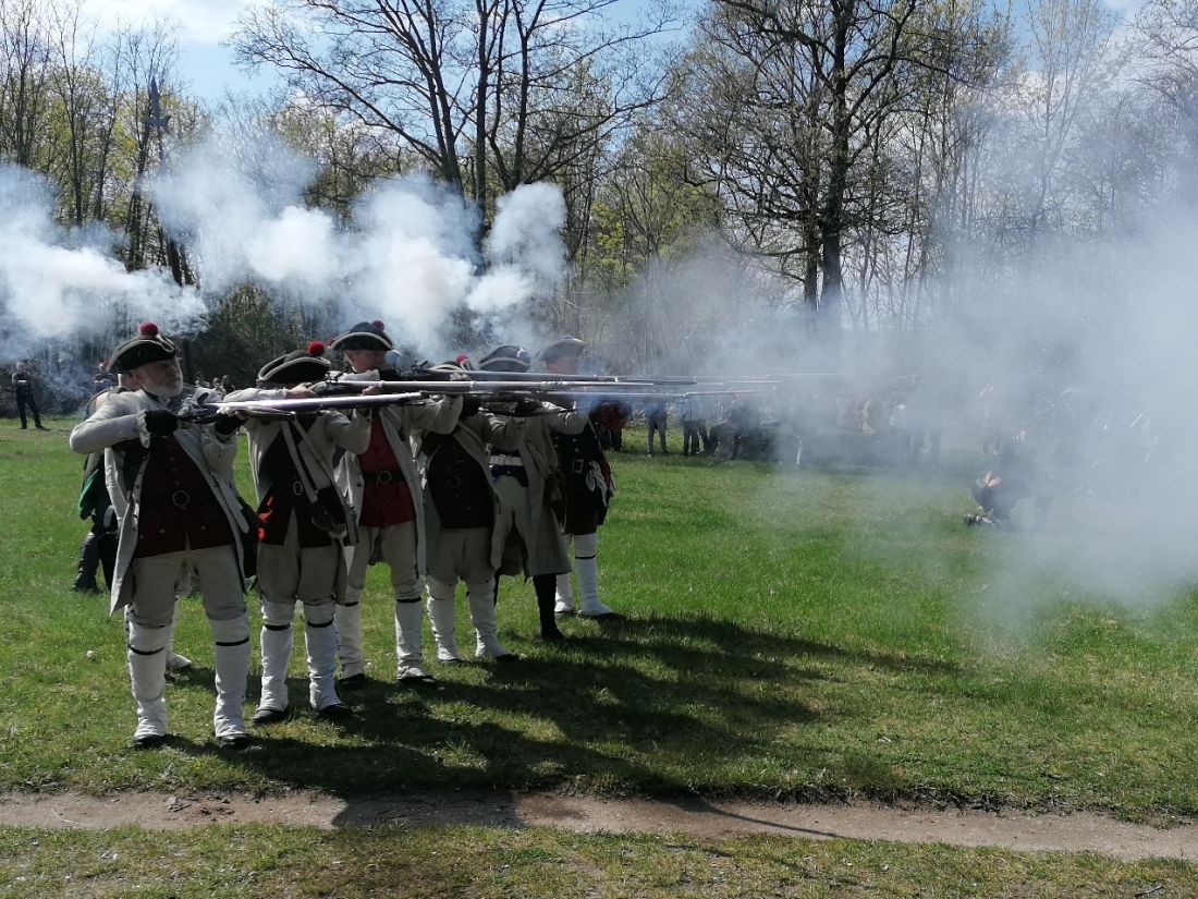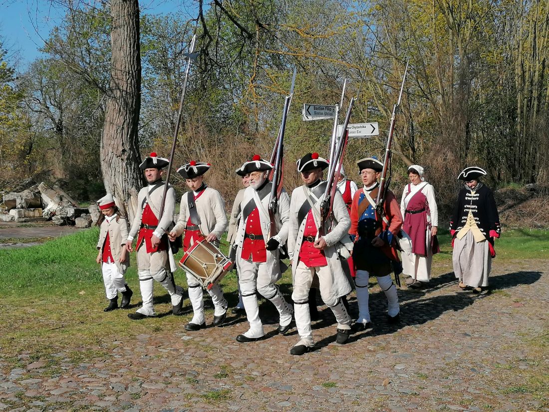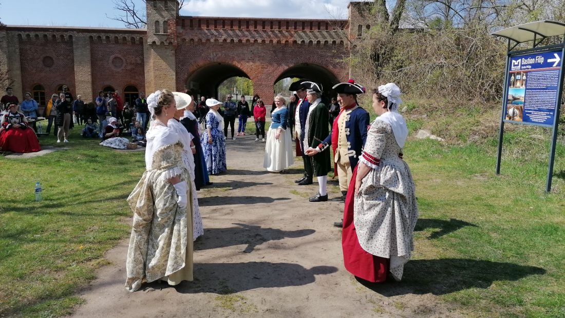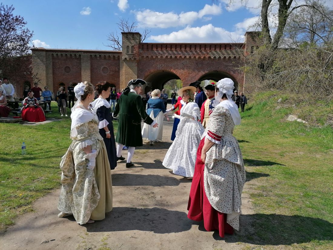 Der Samstag begann mit einem Kanonenschuss als Weckruf, gefolgt von einem Appell vor dem Sockel des Denkmals von Markgraf Johann. Die Teilnehmer des Treffens hörten sich einen kurzen Vortrag über den Siebenjährigen Krieg an. Nach einem Rundgang durch die Museumsausstellung in Begleitung unserer Fremdenführer fand die offizielle Eröffnung der Ausstellung von Militärfahrzeugmodellen statt. An der Eröffnung nahmen die Schwester des verstorbenen Kostrzyner Modellbauers Jacek Wojciechowski, Frau Krystyna Wojciechowska, und der Autor einiger der Modelle, Romuald Komorowski, teil. Die Ausstellung wurde von Rafał Górecki präsentiert, einem Mitarbeiter des Museums, der nebenbei auch Modellbauer ist. All dies fand vor dem Berliner Tor statt, während vor dem Tor eine höfische Tanzshow von einer Gruppe wunderschön gekleideter Damen des Stettiner Vereins "Metrum" in Begleitung von uniformierten preußischen Offizieren aufgeführt wurde. Friedrich der Große selbst war ebenfalls anwesend, diesmal jedoch nur als Beobachter. Die Veranstaltung gipfelte in einem Militärmanöver auf dem Renneplatz. Es gab Aufmärsche, Kommandos, Schüsse, das Laden der Waffen, das Knallen der Musketenschüsse und viel Rauch. Den größten Knall verursachten jedoch die von den Artilleristen bedienten Kanonen, darunter auch unsere Museumskanone. Rafał Górecki erlebte nach vorheriger Ausbildung seine Feuertaufe und wurde mit der Bedienung der Kanone beauftragt. Wir freuen uns, dass die Altstadt wieder einmal zum Leben erweckt wurde, das Wetter war gut, auch wenn es ein wenig schade ist, dass nur eine relativ kleine Gruppe (ca. 300 Personen) der Einwohner von Kostrzyn den ganzen Tag über an der Veranstaltung teilnahm. Offensichtlich entschieden sich andere an diesem Tag für die Attraktionen der Neustadt. Weitere Ereignisse liegen noch vor uns.