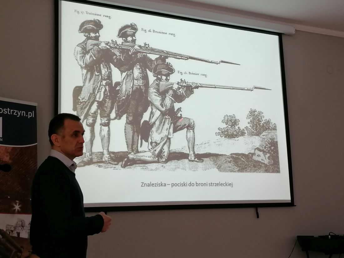 Dies geschah nicht ohne Kanonenschüsse. Anschließend zogen die militärischen Formationen zur Katte-Promenade, wo ein Musketen-Salut abgefeuert wurde. Es gab auch Märsche und Scharmützel zwischen den Truppen und eine gemeinsame Erfrischung auf der Terrasse des Restaurants im Hotel Bastion, wo die farbenfrohe Gruppe großes Interesse bei den Gästen und Kunden der umliegenden Geschäfte und Dienstleistungsbetriebe weckte. Nach dem Essen fand pünktlich um 12:00 Uhr die Eröffnung der Ausstellung "Schlacht bei Kunnersdorf" im Berliner Tor statt - auch hier kam unsere Museumskanone zum Einsatz. Der Eröffnung ging ein Vortrag von Prof. Grzegorz Podruczny im Hörsaal unseres Museums voraus, der sich seit mehreren Jahren mit der Thematik beschäftigt und das Schlachtfeld erforscht. Die polnisch-deutsche Ausstellung ist hauptsächlich das Ergebnis seiner Arbeit und der seiner Kollegen. Dazu gehören auch die Archäologen unseres Museums, die 2019 ein Grab mit den Überresten mehrerer in der Schlacht gefallener Soldaten untersuchen. In der Ausstellung präsentieren wir nur eine kleine Anzahl der interessantesten und charakteristischsten der mehreren Tausend Objekte, die im Zuge der Forschungen gefunden wurden. Ergänzt wurde die Ausstellung durch eigene Exponate und eine preußische Schützenuniform und -ausrüstung, die uns Helmut Lucas, ein Artillerist aus Letschin, zur Verfügung gestellt hat. Leider forderte das Wetter seinen Tribut nicht nur von den Darstellern, sondern auch von den Zuschauern und Touristen, die in viel geringerer Zahl als sonst in die Altstadt kamen. Die Ausstellung am Berliner Tor ist bis zum Ende der Tourismussaison zu den Öffnungszeiten der Touristeninformation zu sehen.