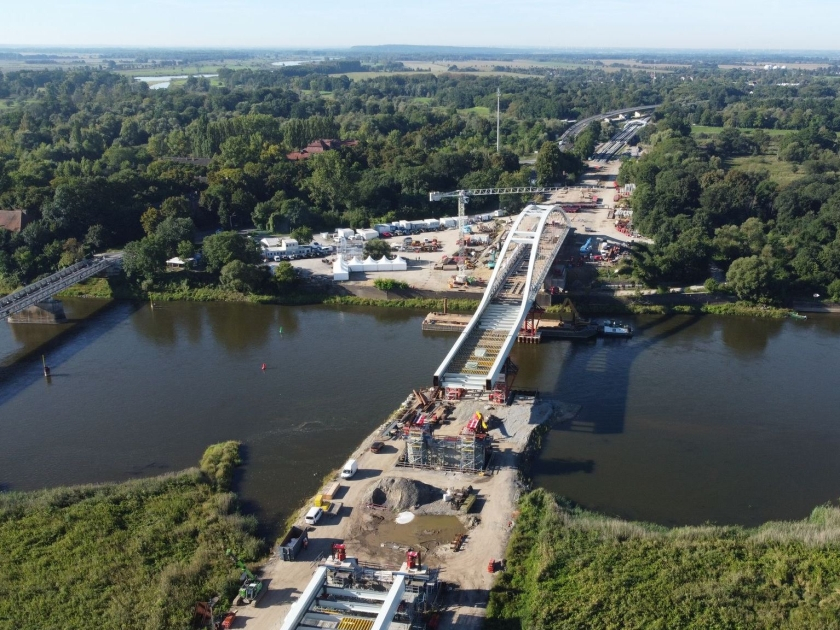 Der Bau der Brücke in Küstrin ist die derzeit größte Brückeninvestition der Deutschen Bahn in Deutschland. Sie ist die größte Kohlefaser-Schrägseilbrücke der Welt. Sie präsentiert sich prächtig und wird ein Vorzeigeobjekt für Kostrzyn und die Umgebung sein. Die Arbeiten werden noch bis Dezember dieses Jahres andauern. Doch die wichtigste und schwierigste Etappe liegt bereits hinter den Bauleuten.