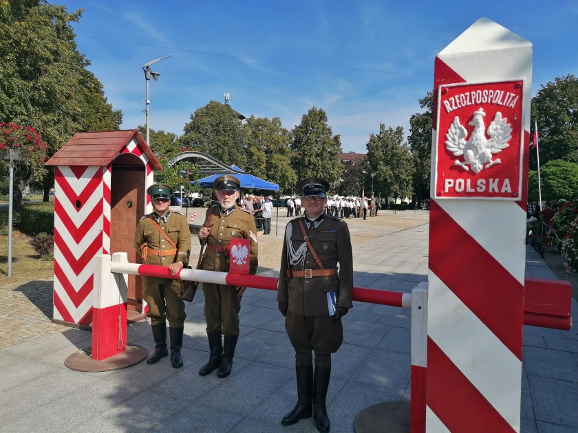 Auf den offiziellen Teil folgte ein Konzert des Orchesters der Grenzschutzeinheit aus Gdańsk, verbunden mit einer Paradeübung. Auf dem Platz gab es auch eine gelegentliche Ausstellung über den Schutz der Staatsgrenzen und einen symbolischen Grenzposten, der von Soldaten des Vorkriegsgrenzschutzes in historischen Uniformen "bemannt" war. Es gab auch einen Stand, an dem Bücher über den Grenzdienst erworben werden konnten, darunter ein von unserem Museum herausgegebenes Buch. Anschließend begaben sich die Teilnehmer in die Altstadt, wo nach der Vorführung eines Films über die Geschichte der Vereinigung im Vortragssaal des Museums auf dem Platz vor dem Museum eine "Eiche der Erinnerung" mit einer entsprechenden Gedenktafel gepflanzt wurde. Die Teilnehmer des Treffens nutzten das Angebot des Museums und machten mit unserem Stadtführer einen Spaziergang durch die Altstadt, und anschließend fand der weniger offizielle Integrationsteil des Treffens in einem von uns aufgestellten Zelt statt. Es ist nur zu bedauern, dass nur eine relativ kleine Gruppe von Kostrzynern dieser wichtigen und interessanten Feier beiwohnte.