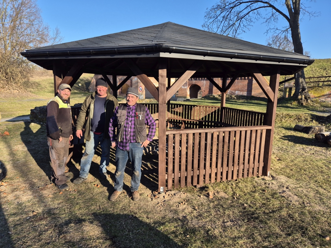 Der neu errichtete Unterstand bietet eine Überdachung für das Lagerfeuer, die es ermöglicht, Treffen zu veranstalten, Würstchen zu braten oder auch vor Regen zu schützen. Dank dieser Lösung können sowohl Individualtouristen als auch organisierte Gruppen den Platz in einer etwas komfortableren Umgebung genießen, unabhängig vom Wetter.