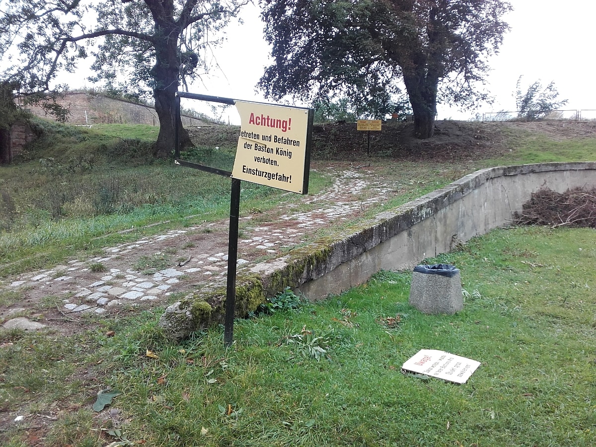 Zudem gab es in der Altstadt praktisch noch nie Konservierungsarbeiten der Pflanzenwelt und die gewaltigen Schäden des Sturms sind auf dem ganzen Gelände des Museums der Festung sichtbar. Die materiellen Schäden sind marginal, viel schlimmer hat es jedoch den Baumbestand getroffen. Breits seit den Morgenstunden bemühen wir uns die Schäden und Gefahrenstellen weitestgehend zu beseitigen. Da wir jedoch nur über einfache Mittel verfügen, wird das bestimmt noch eine ganze Weile in Anspruch nehmen. Viele Dienste haben jetzt viel wichtigere Aufgaben zu erledigen, deswegen ist auch die Bastion Philipp heute auch wegen Stromausfall geschlossen. Wir raten auch entschieden davon ab heute das Gelände Altstadt zu betreten! Die umgestürzten Bäume, die den Straßen und Gassen liegen sind keine Gefahr, vielmehr können jederzeit beschädigte Äste auf die Straße runterfallen. Im Anschluss präsentieren wir Ihnen noch einige Fotos: