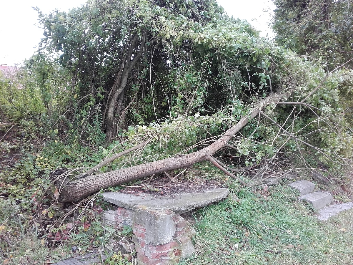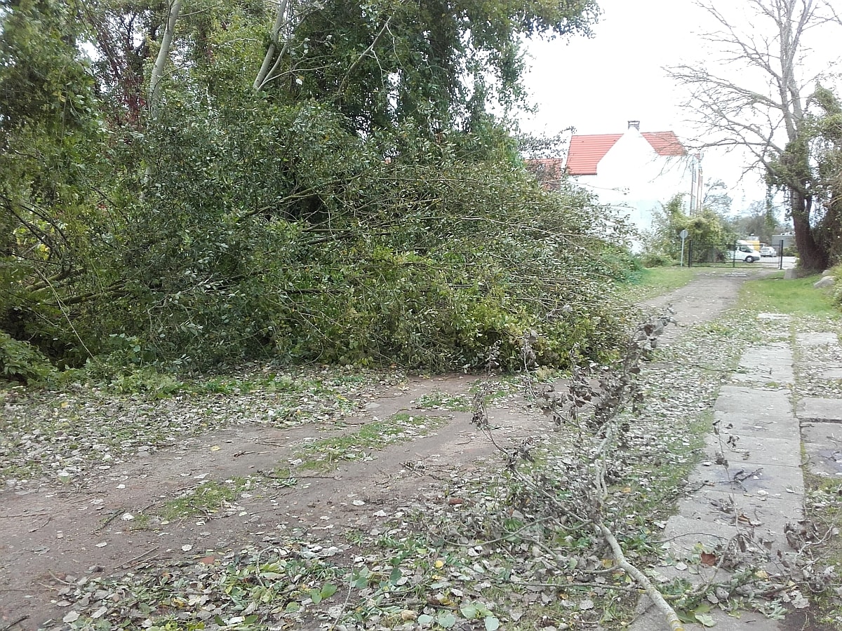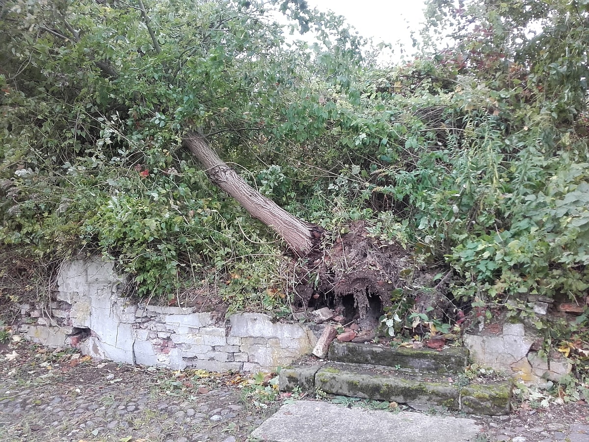 Der gestrige Sturm, der nicht nur in Kostrzyn, aber auch in der ganzen Region gewütet hat, richtete auch in der Altstadt schwere Schäden an. Da der Untergrund auf dem die Pflanzen und Bäume in der Altstadt gewachsen sind, hauptsächlich aus Ruinen besteht, ist die Verankerung ihrer Wurzeln an vielen Stellen nicht besonders fest oder stabil.