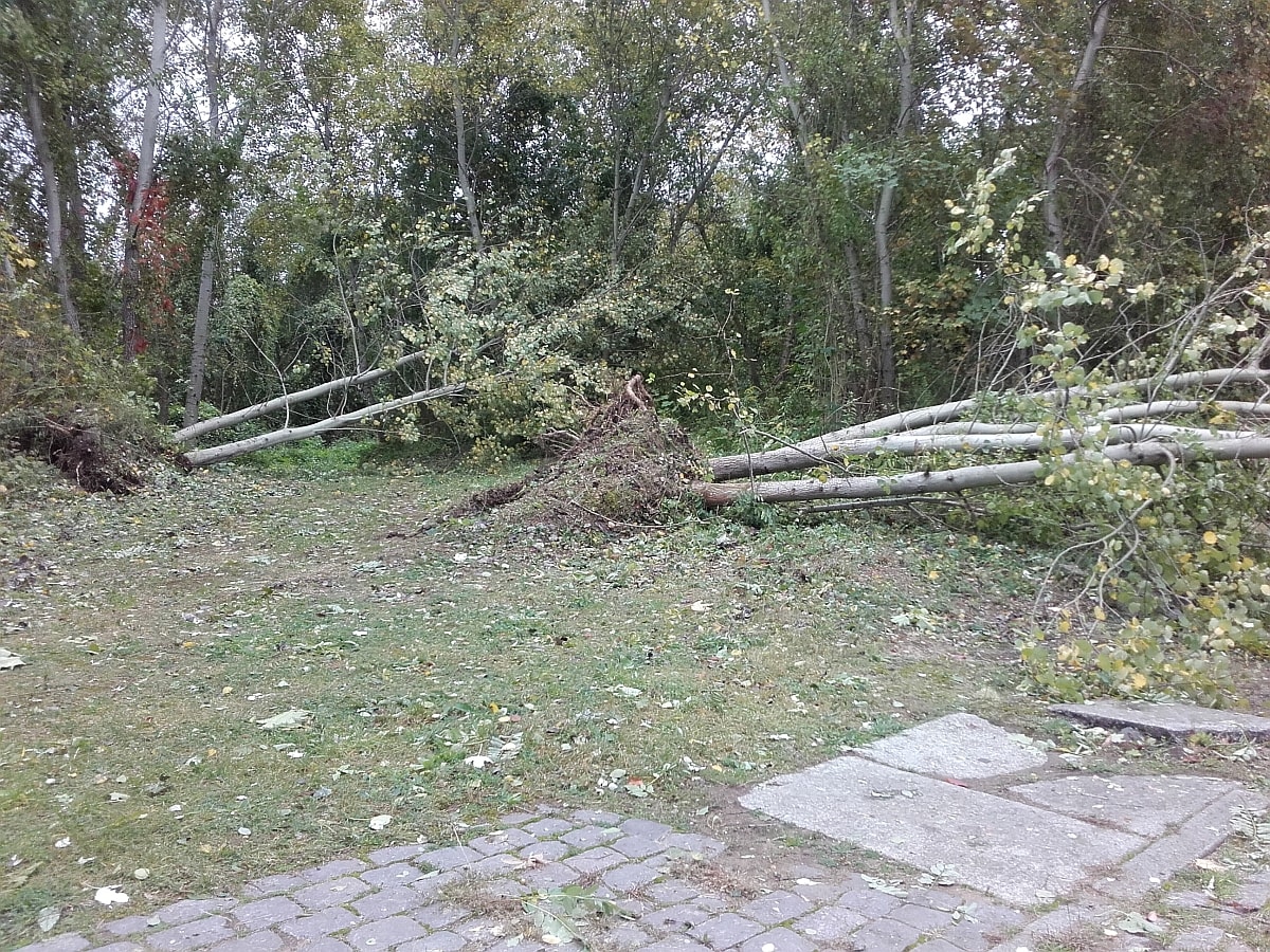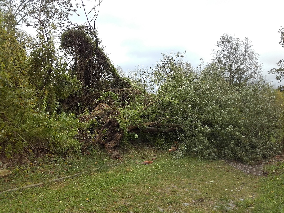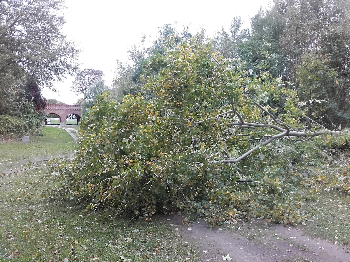 Der gestrige Sturm, der nicht nur in Kostrzyn, aber auch in der ganzen Region gewütet hat, richtete auch in der Altstadt schwere Schäden an. Da der Untergrund auf dem die Pflanzen und Bäume in der Altstadt gewachsen sind, hauptsächlich aus Ruinen besteht, ist die Verankerung ihrer Wurzeln an vielen Stellen nicht besonders fest oder stabil.