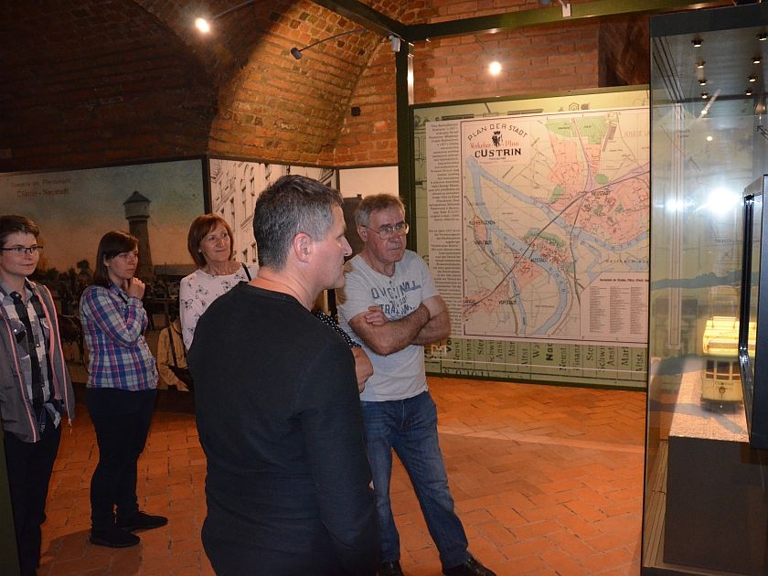 Zuvor mussten sie sich jedoch einer Dokumentenkontrolle am Berliner Tor unterziehen, wo die uniformierten Mitglieder der Wiederaufbaugruppe "Festung Breslau" die Kontrollpunkte der Roten Armee nachgestellt hatten. Für diese Zeit wurde das Tor mit sowjetischen Kriegspropaganda-Plakaten "geschmückt". Direkt hinter dem Tor in der Berliner Straße hatten die Besucher die Möglichkeit, einen Schießstand - das Nest der sowjetischen Infanterie-Maschinengewehre - zu sehen. Nach Überwindung der Pfosten und Hindernisse war es möglich, bei schönem Wetter die Bastion Philip, die am Abend für die Besucher kostenlos zugänglich war, zu Fuß durch die Altstadt zu erreichen. Rund 160 Personen in einer sehr breiten Altersgruppe nutzten diese Gelegenheit. Im Hof der Bastion wurde ein Lagerfeuer angezündet, bei dem man mit den Rekonstrukteuren in den historischen Uniformen der sowjetischen Armee biwakieren konnte. Die vom Museum gestiftete Wurst hat gut geschmeckt! All dies wurde von den Kriegsliedern des bekannten russischen Barden Wladimir Wyssozki begleitet. Die Veranstaltung dauerte bis spät in den Abend und endete in völliger Dunkelheit, die nur durch das Leuchten einiger Kerosinlampen erhellt wurde. Wir danken allen Teilnehmern, die nicht nur aus Küstrin, sondern auch von Słubice, Dębno, Gorzów, Witnica und anderen Orten, auch aus Deutschland, zu uns gekommen waren, für die Teilnahme an der Langen Nacht der Museen und laden Sie fürs nächste Jahr herzlich ein!
