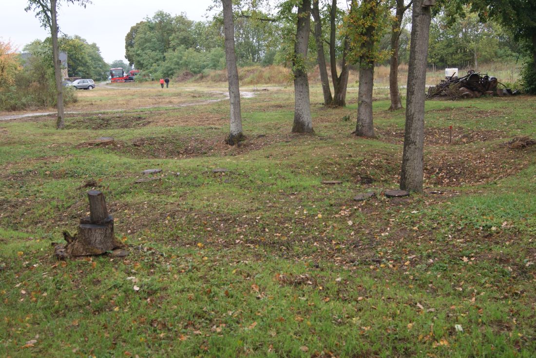 40 Soldaten lösten sich aus dem Schoß und erreichten die deutschen Linien. Diese Ereignisse wurden im Film "Verloren in Klessin" vorgestellt. Ein kleines Gebiet ist bis heute übersät mit den Gräbern gefallener Soldaten von beiden Seiten und sichtbaren Spuren der Kämpfe. Die gefundenen Überreste wurden auf die vorhandenen Kriegsfriedhöfe in Wuhden (deutscher Friedhof) und Reitwein (sowjetischer Friedhof) verlegt. Nichts blieb vom Schloss und anderen Gebäuden des Anwesens übrig. Ein lokaler Verein aus Wuhden möchte diesen Ort zu einem Denkmal für beide Kriegsparteien machen. Dank der Arbeit von Freiwilligen soll das symbolische Portal des Eingangstors zum Schloss wiederhergestellt werden. Ausserdem sind geplant: ein didaktischer Pfad, der zwischen den Trichtern nach Bomben, Gräben und Überresten von Ruinen mit Beschreibungen und Tonaufnahmen in mehreren Sprachen (auch in polnischer Sprache), zwei Gedächtnisblöcken unbekannter Soldaten beider Armeen, Parkplätze für Fahrzeuge. Alles unter dem Motto "Nie wieder Krieg". Projektpartner auf polnischer Seite ist das Museum der Festung Küstrin. Das erste Treffen des Projekts fand Ende August im Sitz des Museums statt. Am 29. September erschien eine über 30-köpfige Busgruppe des Festungsmuseums in Klessin. Die Gastgeber (Vereinsmitglieder und ehrenamtliche Helfer) stellten den Verlauf der Ereignisse im Jahr 1945, die Projektannahmen und die bisher geleistete Arbeit vor. Eine freundliche Geste war eine Beköstigung auf dem Feld: Heiße Suppe bei Regenwetter verbesserte sicherlich die Stimmung der Teilnehmer der Reise und des Treffens. Im nächsten Frühling wollen wir eine Schulgruppenreise von Kostrzyn in diesen Ort organisieren. Wir werden Sie über den Projektfortschritt und das Datum der Bereitstellung der Einrichtung für Besucher auf dem Laufenden halten.