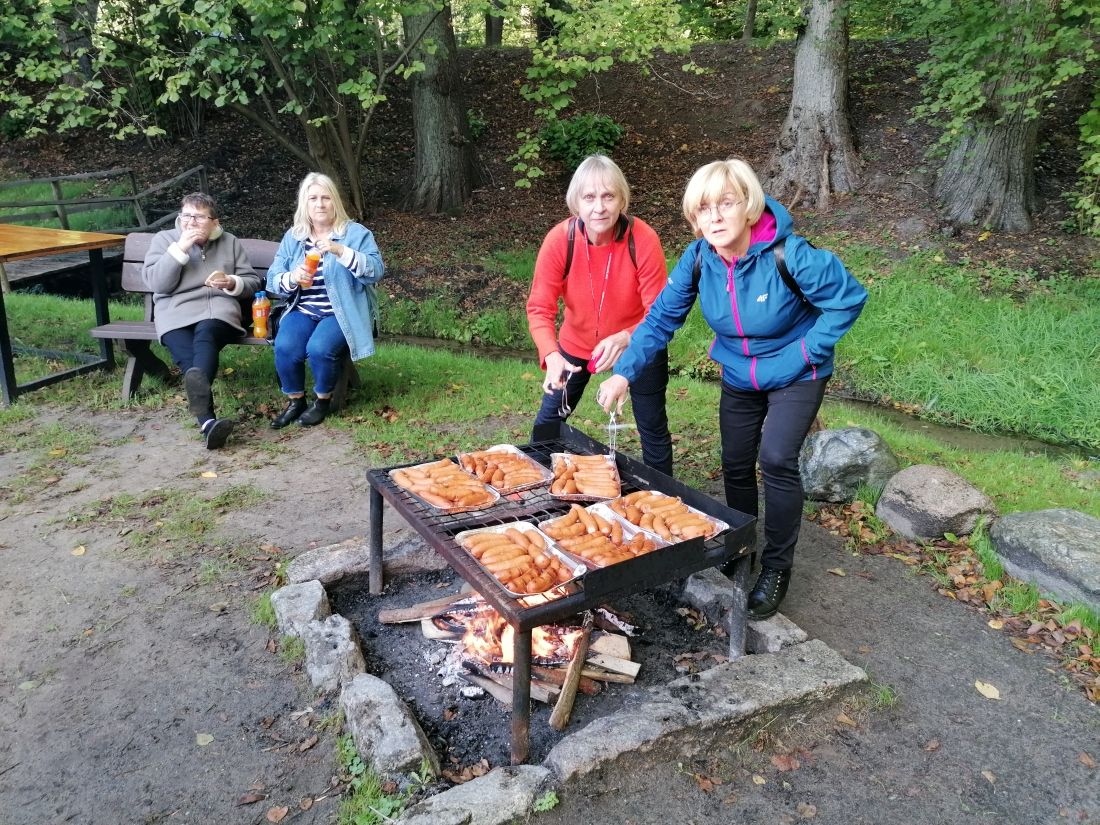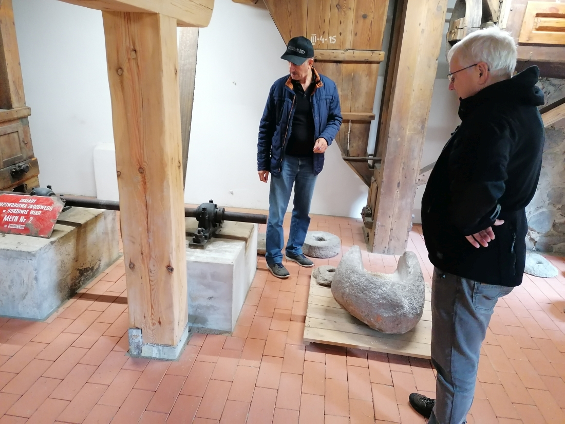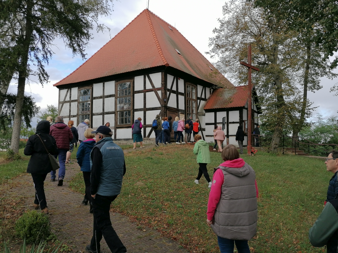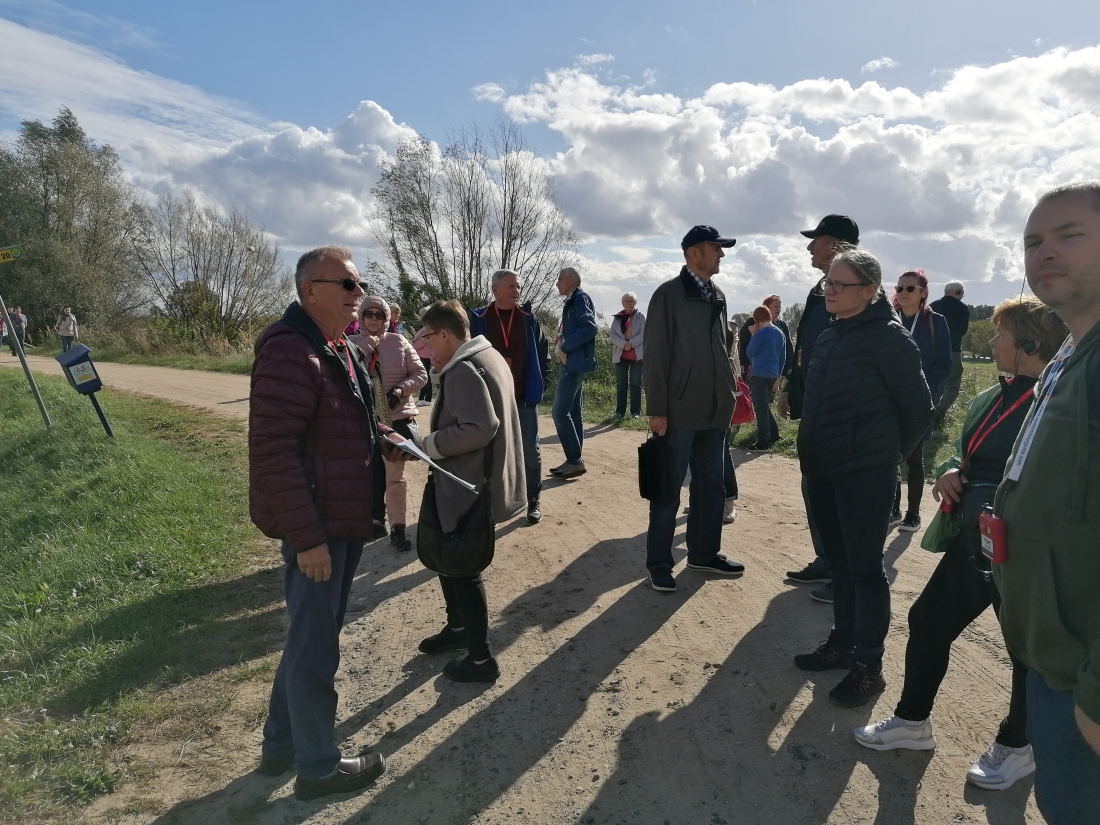 Naszym całodniowym przewodnikiem był znany regionalista z Gorzowa, autor wielu publikacji i miłośnik Ziemi Bogdanieckiej Eugeniusz Cytlak. Rozpoczęliśmy od projekcji filmu na temat Bogdańca w miejscowej Gminnej Bibliotece Publicznej, by następnie w terenie obejrzeć zaprezentowane miejsca i obiekty. W zakolu Warty dotarliśmy do trzech miejscowości, w których obejrzeliśmy trzy różne kościoły: w Podjeninie, gdzie największe zainteresowanie wzbudziła strzelista wieża ze starym dzwonem, we Włostowie i klimatyczny kościół z muru pruskiego na wzgórku w Chwałowicach. Wszystkie te budowle to pomiątki z okresu kolonizacji błot nadwarciańskich. Podczas przejazdów autokarem mogliśmy zobaczyć ponadto dom zbrodniarza hitlerowskiego generała Ericha von dem Bacha-Zelewskiego oraz budynki młyna przemysłowego w Bogdańcu. W międzyczasie odbyliśmy spacer wałem Warty do starej przepompowni w Gostkowicach mijając po drodze oryginalną „Pasiekę w sadzie”. Punktem docelowym naszej podróży była niedawno odremontowana Zagroda Młyńska w Bogdańcu, po której oprowadzili nas pracownicy Muzeum Lubuskiego w Gorzowie (zagroda jest filią tego muzeum). Na zakończenie zasiedliśmy wszyscy do małej biesiady z pieczonymi na ognisku kiełbaskami. Warto w tym miejscu podziękować naszym przewodnikom, ale również pani Alicji, pani Teresie, panu Mirkowi i panu Markowi, członkom naszej grupy, którzy sprawnie zajęli się przygotowaniem posiłku dla wszystkich. O ile pogoda pozwoli, być może w październiku zdecydujemy się na jeszcze jedna wyprawę śladami historii.