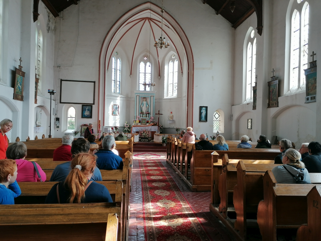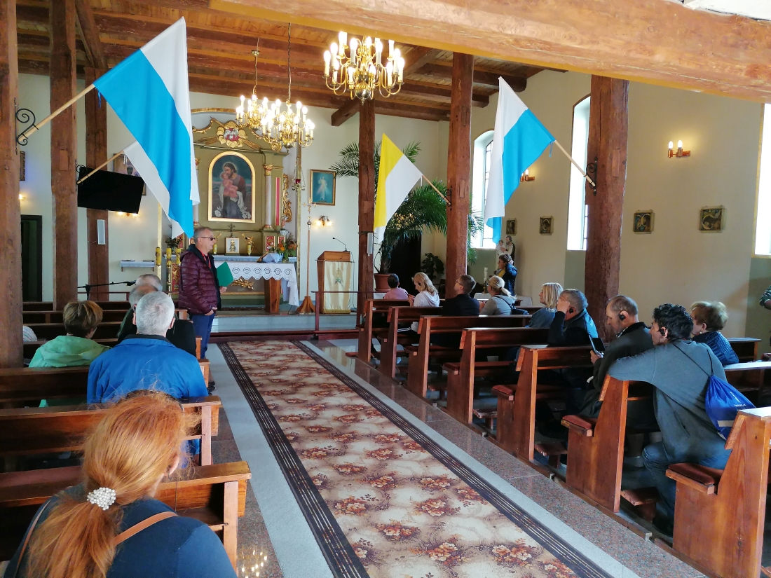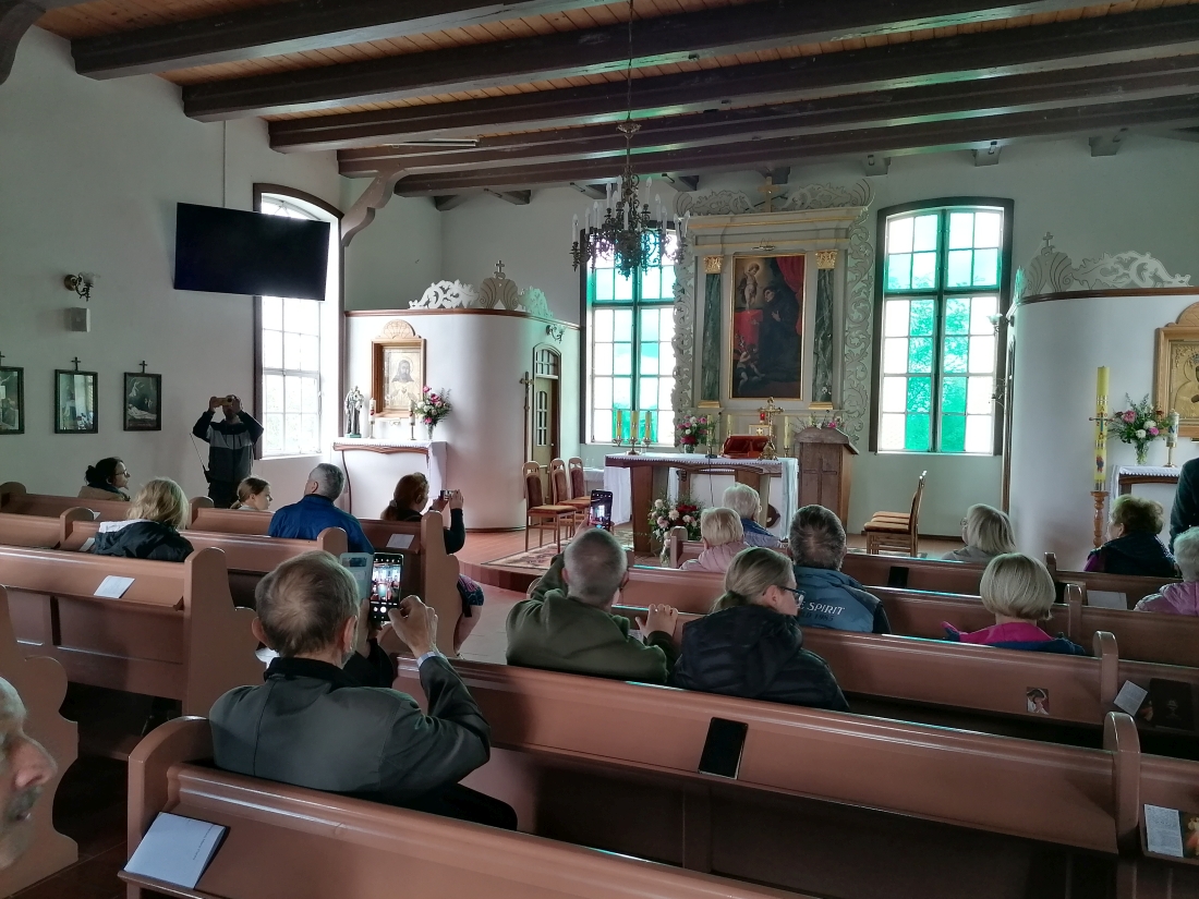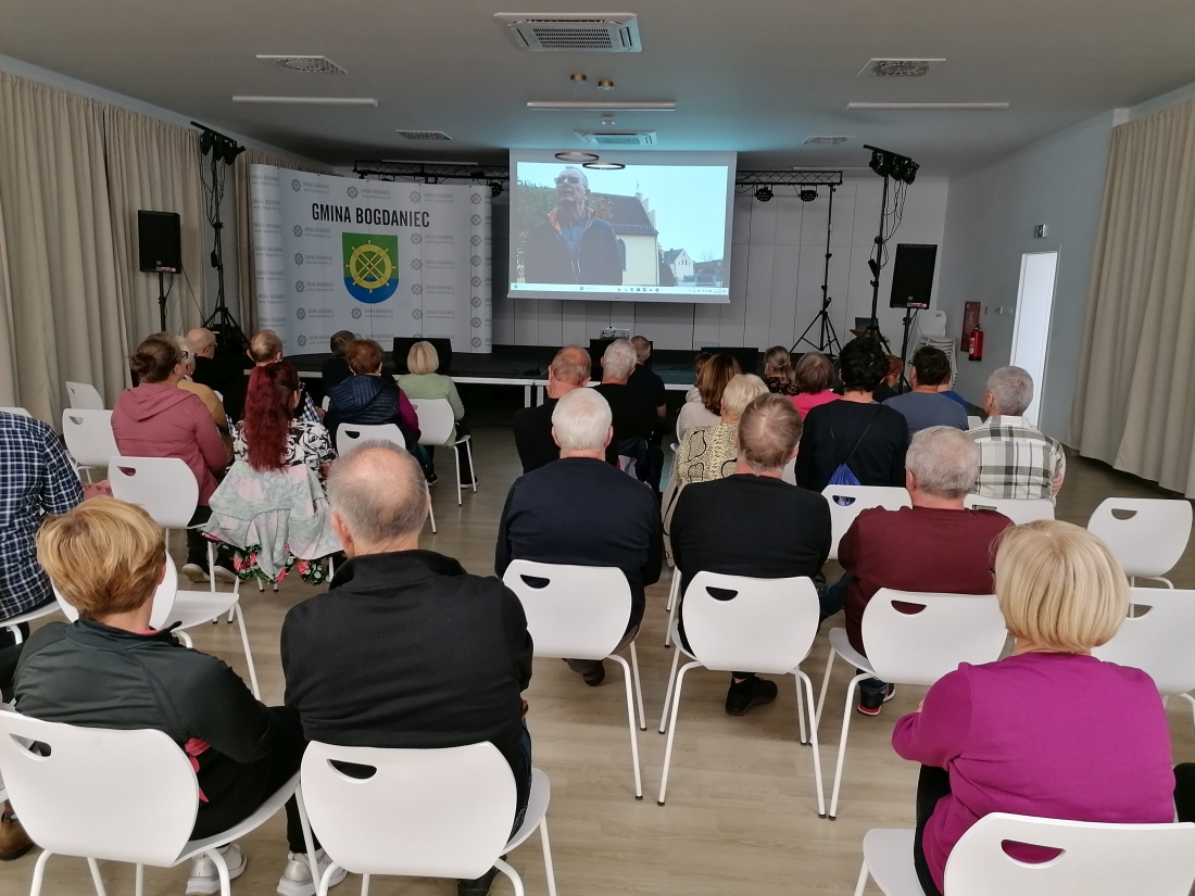 Naszym całodniowym przewodnikiem był znany regionalista z Gorzowa, autor wielu publikacji i miłośnik Ziemi Bogdanieckiej Eugeniusz Cytlak. Rozpoczęliśmy od projekcji filmu na temat Bogdańca w miejscowej Gminnej Bibliotece Publicznej, by następnie w terenie obejrzeć zaprezentowane miejsca i obiekty. W zakolu Warty dotarliśmy do trzech miejscowości, w których obejrzeliśmy trzy różne kościoły: w Podjeninie, gdzie największe zainteresowanie wzbudziła strzelista wieża ze starym dzwonem, we Włostowie i klimatyczny kościół z muru pruskiego na wzgórku w Chwałowicach. Wszystkie te budowle to pomiątki z okresu kolonizacji błot nadwarciańskich. Podczas przejazdów autokarem mogliśmy zobaczyć ponadto dom zbrodniarza hitlerowskiego generała Ericha von dem Bacha-Zelewskiego oraz budynki młyna przemysłowego w Bogdańcu. W międzyczasie odbyliśmy spacer wałem Warty do starej przepompowni w Gostkowicach mijając po drodze oryginalną „Pasiekę w sadzie”. Punktem docelowym naszej podróży była niedawno odremontowana Zagroda Młyńska w Bogdańcu, po której oprowadzili nas pracownicy Muzeum Lubuskiego w Gorzowie (zagroda jest filią tego muzeum). Na zakończenie zasiedliśmy wszyscy do małej biesiady z pieczonymi na ognisku kiełbaskami. Warto w tym miejscu podziękować naszym przewodnikom, ale również pani Alicji, pani Teresie, panu Mirkowi i panu Markowi, członkom naszej grupy, którzy sprawnie zajęli się przygotowaniem posiłku dla wszystkich. O ile pogoda pozwoli, być może w październiku zdecydujemy się na jeszcze jedna wyprawę śladami historii.