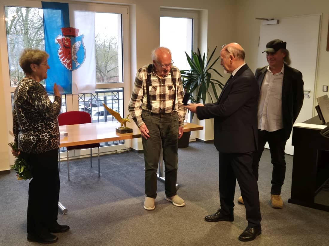 Jej celem jest zwrócenie uwagi na wieloletnią pracę tych osób, które bezinteresownie propagują i wzbogacają wiedzę o mieście i regionie. Dotychczas uhonorowanych zostało 12 osób, w tym dwójka Polaków: Alicja Kłaptocz i śp. Zbigniew Czarnuch. Trzynastym laureatem został przyjaciel Muzeum Twierdzy Klaus Thiel – rodowity kostrzynianin, mieszkaniec Berlina, znany wielu osobom interesującym się historią naszego miasta choćby z kilku spacerów i wycieczek po Starym Mieście w jego towarzystwie (ostatnio w maju br. podczas Nocy Muzeów). Uroczystość wręczenia nagrody odbyła się 29 listopada br. w domu kultury w Küstrin-Kietz. Nagrodę w imieniu zarządu stowarzyszenia wręczył jego przewodniczący Martin Rogge, a sylwetkę laureata oraz jego działalność na rzecz popularyzacji wiedzy na temat historii Kostrzyna zaprezentował gościnie dyrektor Muzeum Twierdzy Ryszard Skałba. Klaus Thiel podkreślił w swoim wystąpieniu współpracę z naszą placówką i zaprosił na kolejny spacer po Kostrzyńskich Pompejach. O dacie i szczegółach poinformujemy, a laureatowi nagrody serdecznie gratulujemy!