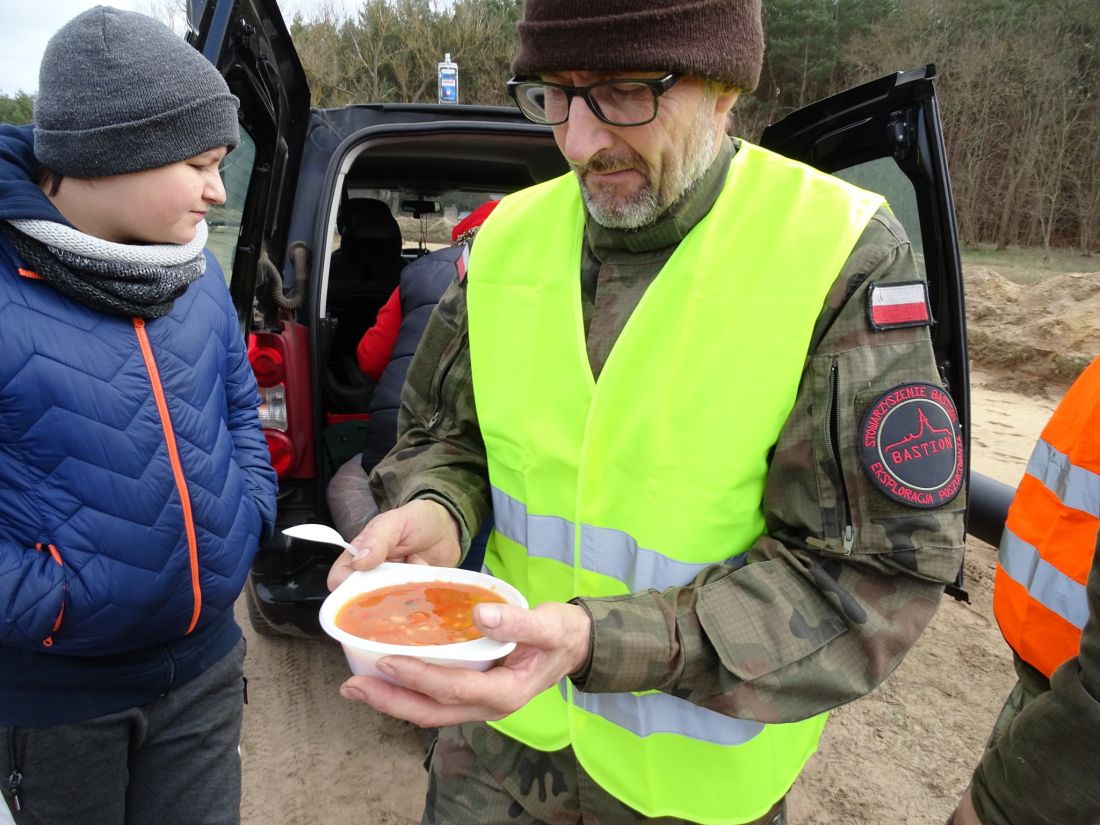 Zanotowaliśmy znaczne natężenie obiektów archeologicznych (tj. paleniska, dołki posłupowe, jamy, ziemianki oraz groby ciałopalne). Łącznie na stanowisku tym zarejestrowano ponad 220 obiektów kulturowych. Rozpoczęliśmy też wykopaliska na dwóch kolejnych dwóch stanowiskach. Czynimy starania, aby prace zakończyć jak najszybciej. Cieszymy się, że możemy liczyć na wsparcie ludzi naszych sympatyków, miłośników historii, archeologii. 27 lutego na polach pod Czarnowem pojawiło się ponad 30 osób, często z odległych części kraju (m. in. z Częstochowy, Czaplinka, Radomska). Niektórzy spędzili wiele godzin w podróży, aby być z nami i spędzić czas w pięknych okolicznościach przyrody z innymi przesympatycznymi ludźmi. Niektórzy przyjechali całymi rodzinami z dziećmi i pieskami włącznie. Nasze działania wsparli członkinie i członkowie niedawno założonego kostrzyńskiego Stowarzyszenia Bastion Eksploracja Poszukiwania, Stowarzyszenia historyczno-kulturalnego Tempelburg, Stowarzyszenia Radomsk oraz osoby niezrzeszone. Dzięki temu wsparciu udało się przebadać kolejny odcinek wykopu. Zaznaczmy, że pomoc świadczona była bezpłatnie, za przysłowiową, a w tym przypadku również rzeczywistą „miskę zupy”, którą Muzeum poczęstowało wolontariuszy. Dzień zakończył się ogniskiem na Starym Mieście. Wszystkim serdecznie dziękujemy i cieszymy się, że mamy tak wspaniałe grono przyjaciół.